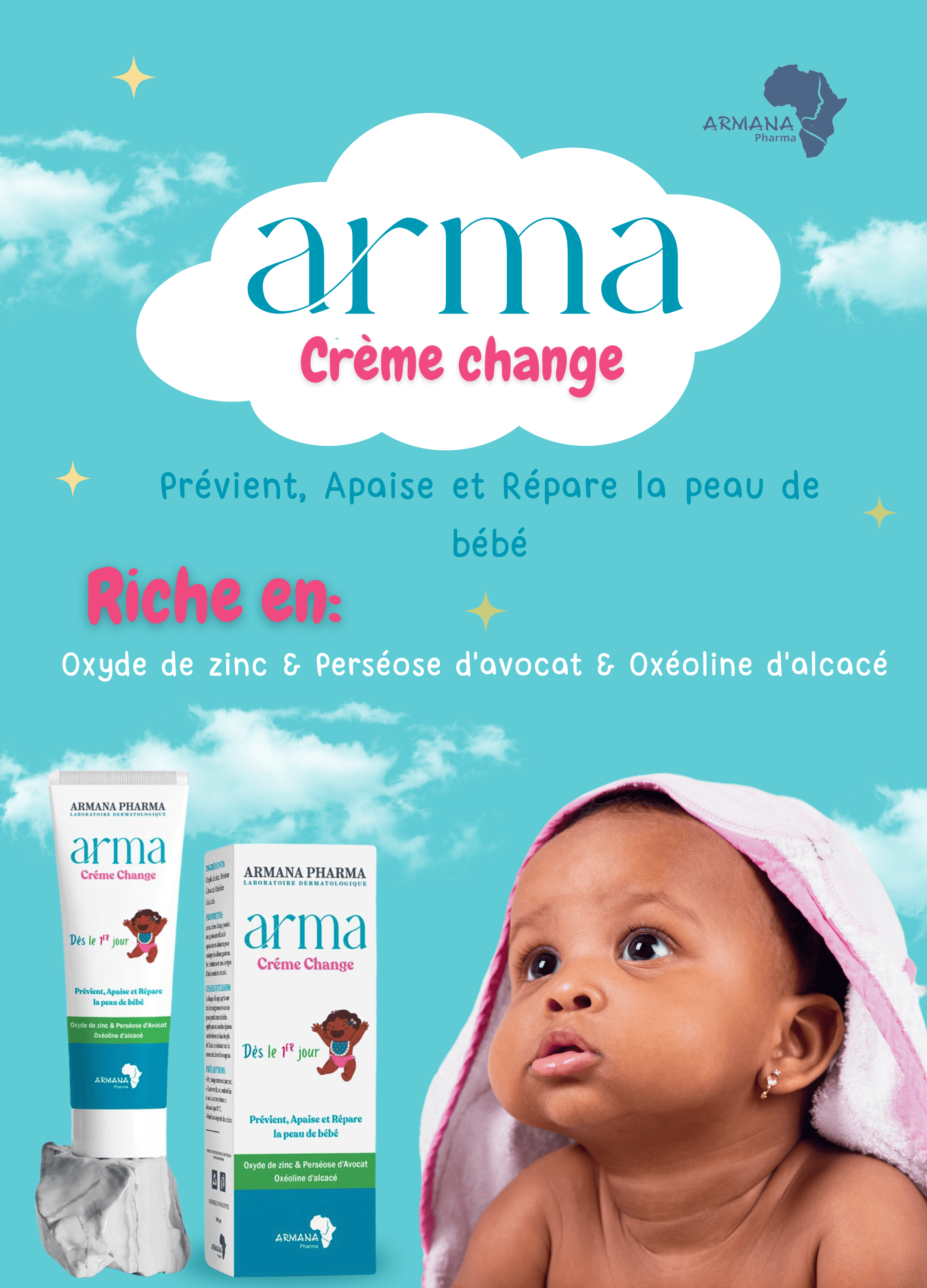 Rich en : Oxyde de zinc & Perséose d'avocat & Oxéoline d'alcacé Composée d’ingrédients d’origine naturelle comme : Oxyde de zinc : • propriétés réparatrices et purifiantes Perséose d'avocat : • pour renforcer la barrière Oxéoline d'alcacé : • propriétés anti-inflammatoire CONSEILS D’UTILISATION : • Appliquer à chaque change sur les fesses propres et sèches en massant légèrement. Une crème non parfumée. Une texture non collante, facile et agréable à des bébés des agressions multiples. Disponible en format Une crème de 100 GM.