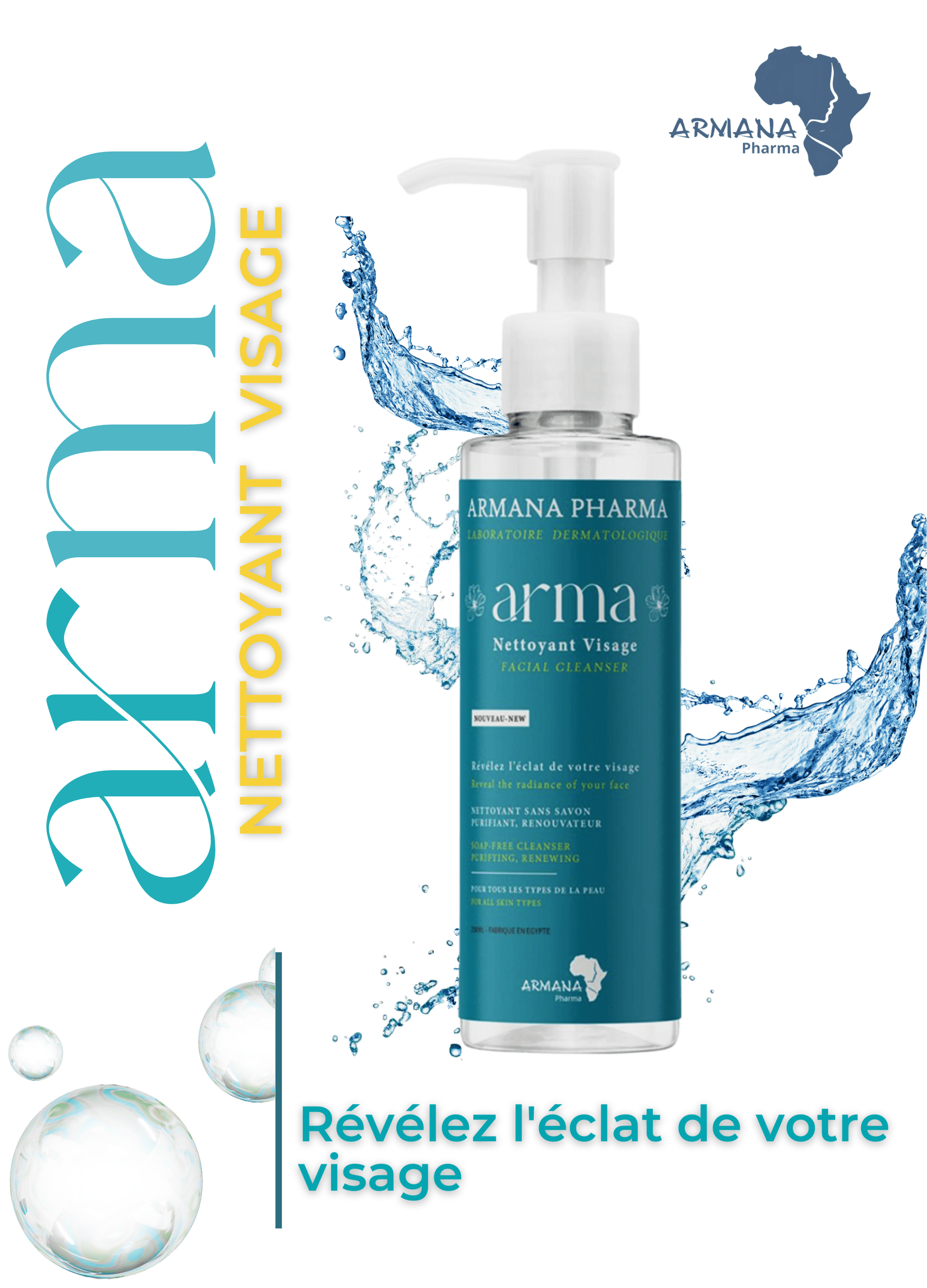 Comment utiliser Arma nettoyant visage? Appliquez arma gel nettoyant deux fois par jour (matin et soir) pour une minute puis se rincer. À propos d’arma gel nettoyant : sans produits chimiques agressifs, sans parabènes, sulfates et parfums artificiels. Gel nettoyant de 250 ML. Choisissez arma gel nettoyant aujourd'hui pour embrasser la puissance de la nature et adopter une peau radieuse et saine. Acide salicylique : • Exfolier en douceur pour éliminer les cellules mortes de la peau. • Désobstruer les pores et pousser l’acné et éliminer les imperfections. Acide glycolique (AHA) : • Illuminer et unifier le teint et révéler un éclat radieux. Huile d’arbre à thé : • Réduire les inflammations et les rougeurs et lutter contre les mycoses cutanées. • Combattre la croissance des bactéries. Panthénol et Extrait d'Aloe Vera : • Hydrater et apaiser en profondeur la peau irritée, favoriser la cicatrisation. Extrait de camomille : • Apaiser et calmer l'inflammation et réduire les rougeurs et les irritations. Vitamine C : • proteger la peau des dommages environnementaux et soutenir la production de collagène pour une apparence jeune.
